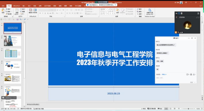 2023年8月23日15时,44118太阳成城集团召开了2023年秋季研究生开学主题班会,通过线上会议的方式,分别在研究生新生班级和老生班级召开。两场会议由公司研究生会主席尚玉豪同学主持,康玮辅导员主讲,对秋季开学的工作安排和返校注意事项进行详细说明,为顺利开展返校工作做好充分准备。
