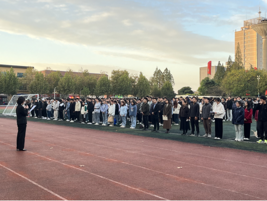 11月6日早上7:00,44118太阳成城集团在东校区老田径场举行升旗仪式。公司党委副书记张晨露,全体辅导员和2022级、2023级全体本科生参加。仪式由电信类12301班李悦嘉同学主持。