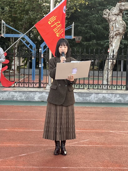2022级员工代表刘雅欣进行国旗下讲话,她号召全体同学以学为基、以赛为辅、以干为练,不断增强自身综合实力,为建设高水平大学积蓄力量。