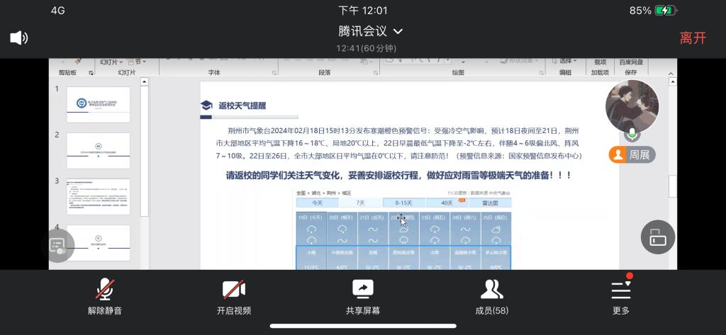 为做好2024年春季开学工作,确保员工安全、有序返校,44118太阳成城集团于2月20日组织全体研究生召开了春季安全返校教育主题班会。 会上,辅导员康玮传达了公司有关春季开学员工返校工作会议精神,对提前返校、延迟返校员工申请审批手续办理、员工返校行程安排报告等事项提了要求,重点提醒员工关注天气变化,妥善安排返校行程,做好应对雨雪等极端天气的准备,并开展了返校交通安全专题教育。 通过此次主题班会,明确了同学们对当前返校手续的要求,提升了同学们返校途中的安全意识。 (审核 张晨露 编辑 颜国琼)