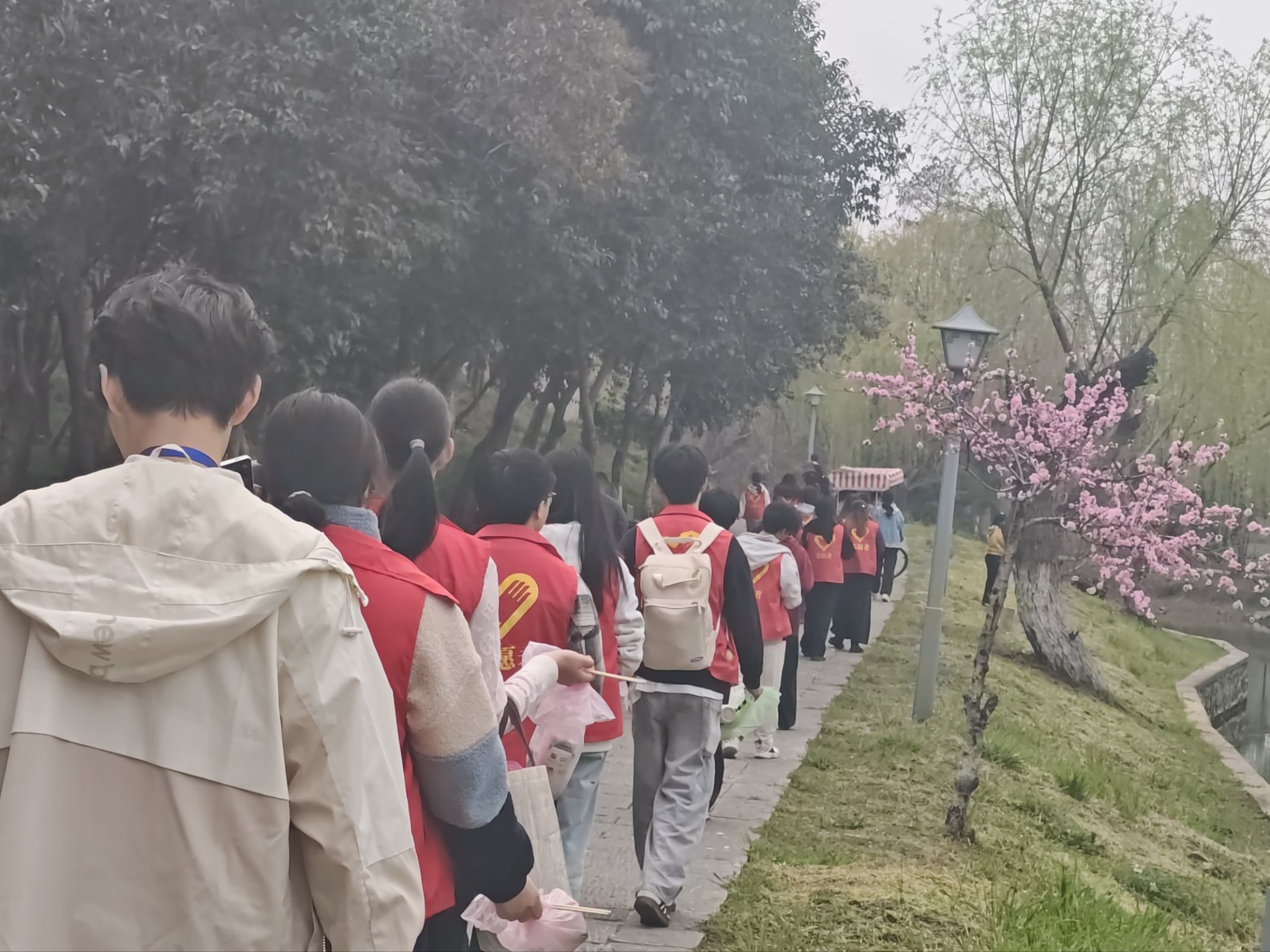 本次城墙环卫志愿服务活动历时两个小时,共有54名志愿者积极参与。下午两点,青年志愿服务队工作人员提前准备好队旗、工牌、志愿服装及清洁工具,组织全体志愿者在校门口集合签到、领取物资,并在出发前进行合影留念。随后,在负责人的统一带领下,志愿者们徒步前往荆州市古城墙景区,正式开展志愿服务活动。