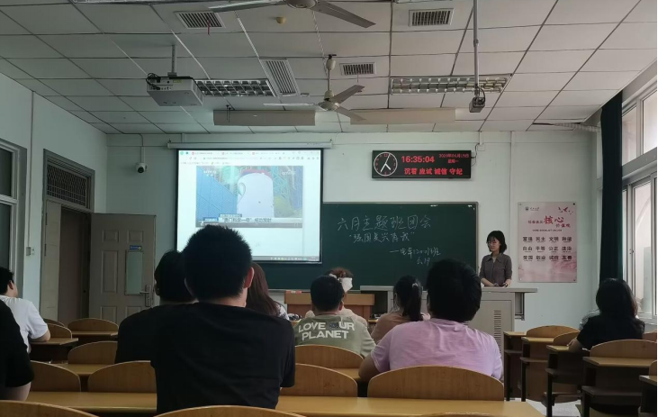 6月21日上午,电信类12202团支部在13教D221教室举行班团会。郭懿莹同学带领支部团员和青年们学习习近平总书记给参与“澳门科学一号”卫星研制的澳门科技大学师生代表的回信精神,向大家介绍了习近平总书记给上海市虹口区嘉兴路街道垃圾分类志愿者回信精神。她动员广大青年共同参与生活垃圾分类,践行绿色低碳、文明健康的生活理念和生活方式,推动垃圾分类切实成为校园低碳生活新时尚,她呼吁青年员工积极成为环境保护的志愿者、实践者和环保行动的宣传者和推动者。