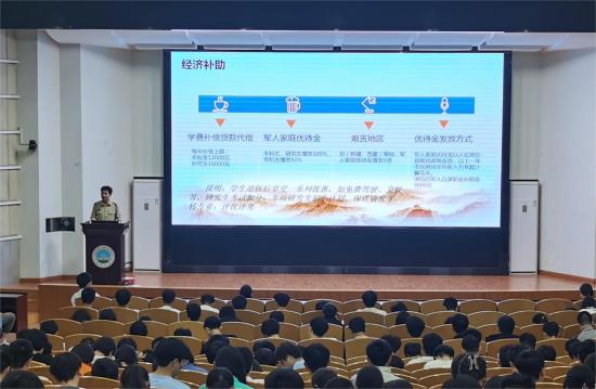 周丽军同学以国防的重要性为切入点,从征兵工作的意义、基本条件、组织流程、优待政策四个方面详细解读了老员工应征入伍的政策法规。同时他强调征召老员工参军入伍是党中央、国务院、中央军委作出的重大战略决策,对改善兵员素质、提高部队战斗力、促进青年员工的成长成才具有重要意义。同时,向全体2022级同学具体介绍了报名征兵的流程。