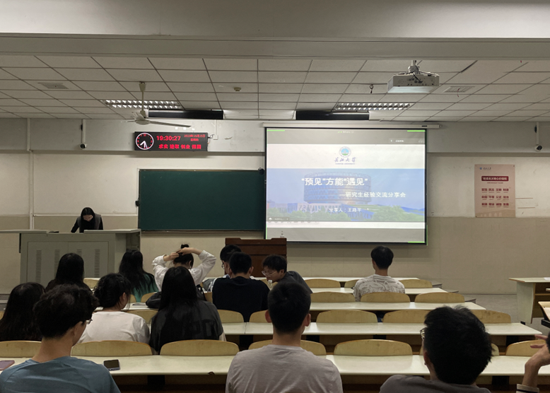 随后由电子信息公司王路平同学为大家分享的主题是“遇见,方能遇见”,她从个人介绍、研究生三年规划、论文经验分享、比赛经验分享、心得体会这五个方面向研一同学充分的诉说了她三年读研生涯的经历,她讲述的经历为在座的同学们避坑以及做好时间规划,警戒同学们找好方向、把握机会。