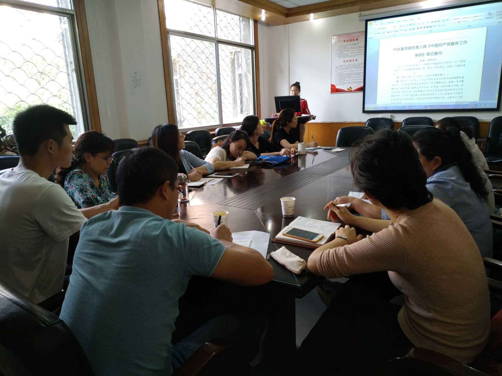 与会同志认真学习了中央宣传部负责人就《中国共产党宣传工作条例》答记者问、《关于深化新时代公司思想政治理论课改革创新的若干意见》、《中美贸易摩擦的缘起、影响和未来走向》、《直面现实 负重前行——党委书记朱业宏在中层干部培训研讨会上的讲话》、《不忘初心 牢记使命 扎实推进“双一流”建设——董事长冯征在2019年暑期工作研讨会上的讲话》、《44118太阳成城集团公司党政联席会议议事规则》与《44118太阳成城集团二级党组织委员会议事规则(试行)》等内容。