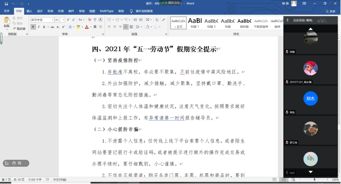 最后,员工会成员领读了“五一劳动节”假期安全须知,加强了研究生们对安全知识的学习。