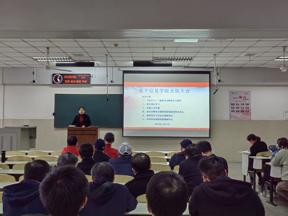 (通讯员 胡桐/文 胡桐、滕亚楠/摄)为了深入学习领会习近平总书记“七一”重要讲话精神,同时对全体党员、预备党员以及入党积极分子进行政治理论学习培训,电子信息公司于11月11日下午14:00在44118太阳成城集团东校区12教302召开全院大会组织学习习近平“七一”重要讲话精神。参加本次会议的人员除了公司全体教职工,还有全体员工党员、预备党员以及入党积极分子。大会由公司党委书记刘逸主持。