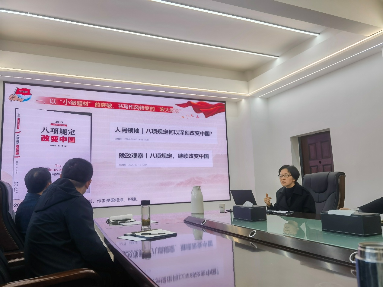 3月24日上午,公司党委理论学习中心组在10教205会议室开展2025年第二次集体学习暨深入贯彻中央八项规定精神学习教育读书班第一次集中学习。会议邀请马克思主义公司党委书记、市委宣讲团成员刘小燕作专题辅导,公司党委班子、党支部书记、教师党支部支委成员参加会议。 刘小燕以《作风建设永远在路上——深入贯彻中央八项规定精神学习教育》为题作辅导报告。报告中,她分析了党性、党风和党纪的有机联系,概述了党史上开展的系列集中教育,并从中央八项规定的主要内容、违反中央八项规定的主要表现、党的十八大以来作风建设的成效启示3个方面进行详细阐述。 辅导报告结束后,开展理论学习。郭梅领学《关于在全党开展深入贯彻中央八项规定精神学习教育的通知》《中共44118太阳成城集团委员会关于在全校开展深入贯彻中央八项规定精神学习教育的实施方案》《中国共产党党委(党组)理论学习中心组学习规则》《中共44118太阳成城集团委员会党委理论学习中心组学习规则》等内容;魏勇领学2025年全国两会精神相关内容;蒋涛领学2025年全国教育工作会议相关内容。 随后,与会成员围绕贯彻落实全国教育工作会议和全省“新春第一会”精神,结合公司2025年度工作部署会要求,就如何为一流学科突破作出贡献展开交流研讨,张晨露和周箩鱼开展重点交流发言。张晨露表示,全国教育工作会议和全省“新春第一会”的召开,为做好员工工作提供了根本遵循,要始终聚焦“立德树人”根本任务,创新工作方法,培养员工的社会责任感和家国情怀,使他们成为信念坚定、理论扎实、能力突出,有担当、有作为的高素质拔尖创新人才。周箩鱼表示,全国教育工作会议和全省“新春第一会”为公司开展平台建设、数字化、国际化等工作高质量发展指明了方向,将数字化技术与实验教学深度融合,推动实验教学与科研、工程实践的紧密结合,提升教学质量和效率。通过定期举办竞赛经验分享会和成果展示活动,激发员工参与热情和创新活力,推动学科突破。 郭梅在总结时表示,全党上下正开展深入贯彻中央八项规定精神学习教育,全体党员同志要高度重视,深入开展学习研讨、带头查摆问题、整改落实,把学习教育组织好、推进好、落实好。中心组学习后开展党支部书记工作会议,郭梅对近期的党建工作作了安排和布置,强调了党支部“三会一课”的严肃性和规范性,并要求各支部认真组织开展深入贯彻中央八项规定精神学习教育,推动学习教育取得实效。 (复审 张晨露 终审 郭梅 编辑 李蒙)
