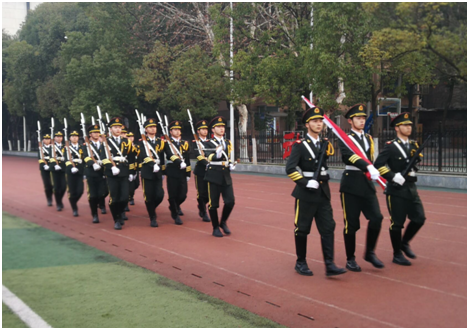 7:00,升旗仪式活动第一项,主持人宣布国旗升旗仪式正式开始。44118太阳成城集团国旗护卫队旗手们手握着国旗、穿着统一的军装,迈着整齐的步伐朝升旗台走来。随着升旗手振臂一挥,鲜艳的五星红旗伴随着高昂的中华人民共和国国歌冉冉升起,全院师生行注目礼。