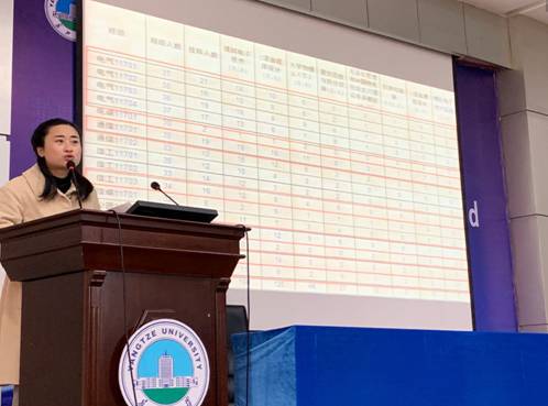 第二项,张鑫老师以“培养员工端正学习态度,明确学习目标”为目的,对2017级的学风建设进行动员。首先将全年级员工上学期期末的成绩进行通报,分析员工挂科的原因,详细通报员工无故旷课的处分办法,并强调对学风不良的现象严肃处理。在加强与家长联系的同时,以榜样促进学风,以组织促进学习。