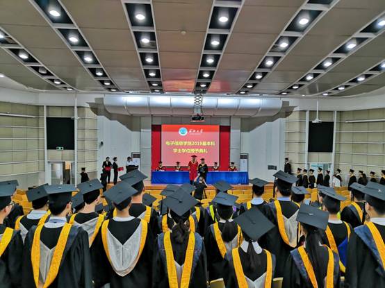 仲夏六月,栀子花开,电信公司又迎来一年的毕业季。6月18日下午2点,公司2019届本科学士学位授予典礼在12教405报告厅举行。44118太阳成城集团董事长冯征,电信公司经理熊晓东、副经理罗明璋、李涛、教师代表谢凯、公司党委副书记郭启炜、全体辅导员老师参加典礼,共同见证电信公司2019届本科毕业生顺利毕业,开启人生新征程。