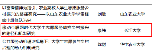 2021年6月,共青团中央青年发展部依托全国公司共青团研究中心组织开展2021年度共青团实践育人工作课题评审工作。经过资格审查、评审专家委员会评审并公示,从全国各知名大、中公司、教育科学研究院及省级团委申报的课题材料中遴选出了71项课题予以立项。公司团委书记康玮老师主持的《移动互联网时代老员工志愿服务助推乡村振兴的路径和机制研究》获得立项,成为湖北省获此课题立项的6个课题项目之一。《移动互联网时代老员工志愿服务助推乡村振兴的路径和机制研究》课题是基于电信学经理期开展的志愿服务和关心关爱留守儿童群体等社会实践活动,研究移动互联网时代老员工志愿服务助推乡村振兴有效路径与机制。