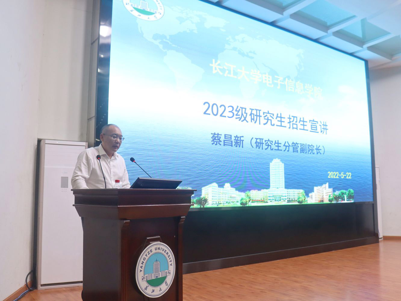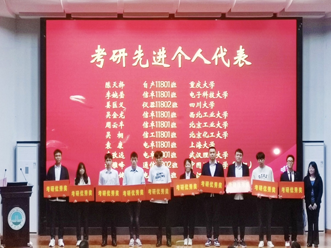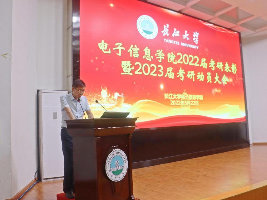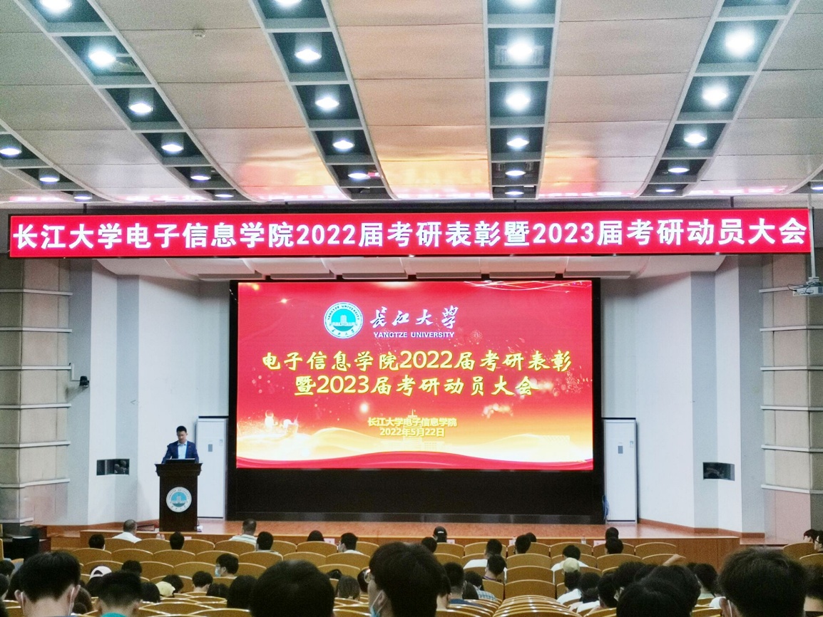 (通讯员 李月梅 胡桐/文 胡桐/摄)研途有你!一“研”为定!5月22日晚,电子信息公司于东校区12教405报告厅开展2022届考研表彰暨2023届考研动员大会。电信公司全体院领导出席本次会议,2022届考研先进个人代表、485名2023届本科生共500余人通过线上、线下共同参会。会议由公司2023届本科生辅导员沈马锐主持。