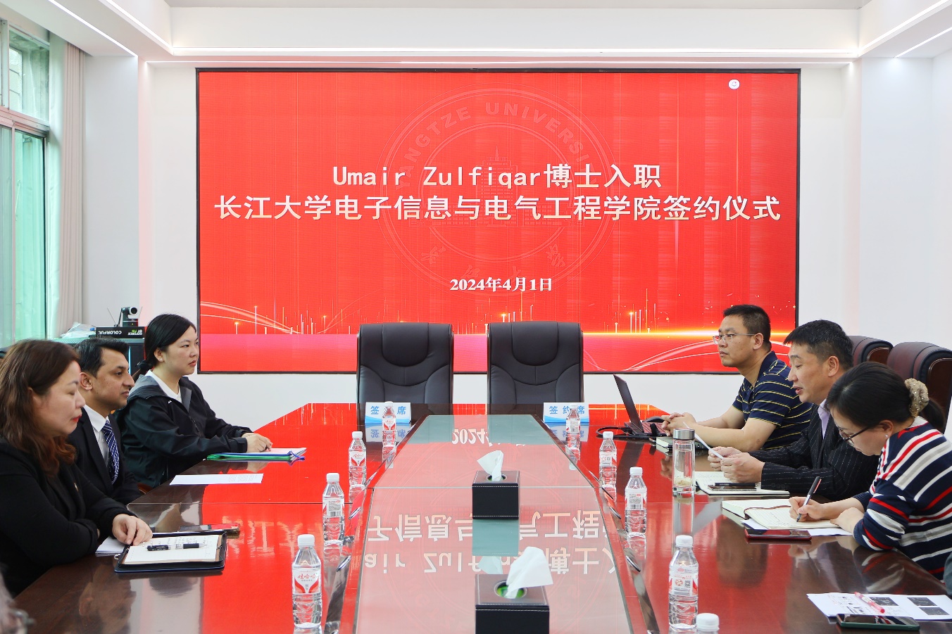 4月1日上午,公司在10教205会议室举行Umair Zulfiqar博士入职签约仪式,上海大学机电工程与自动化公司博士宋秋艳,公司人力资源部副部长王中梅,公司党政领导及电气系师生代表参加仪式。