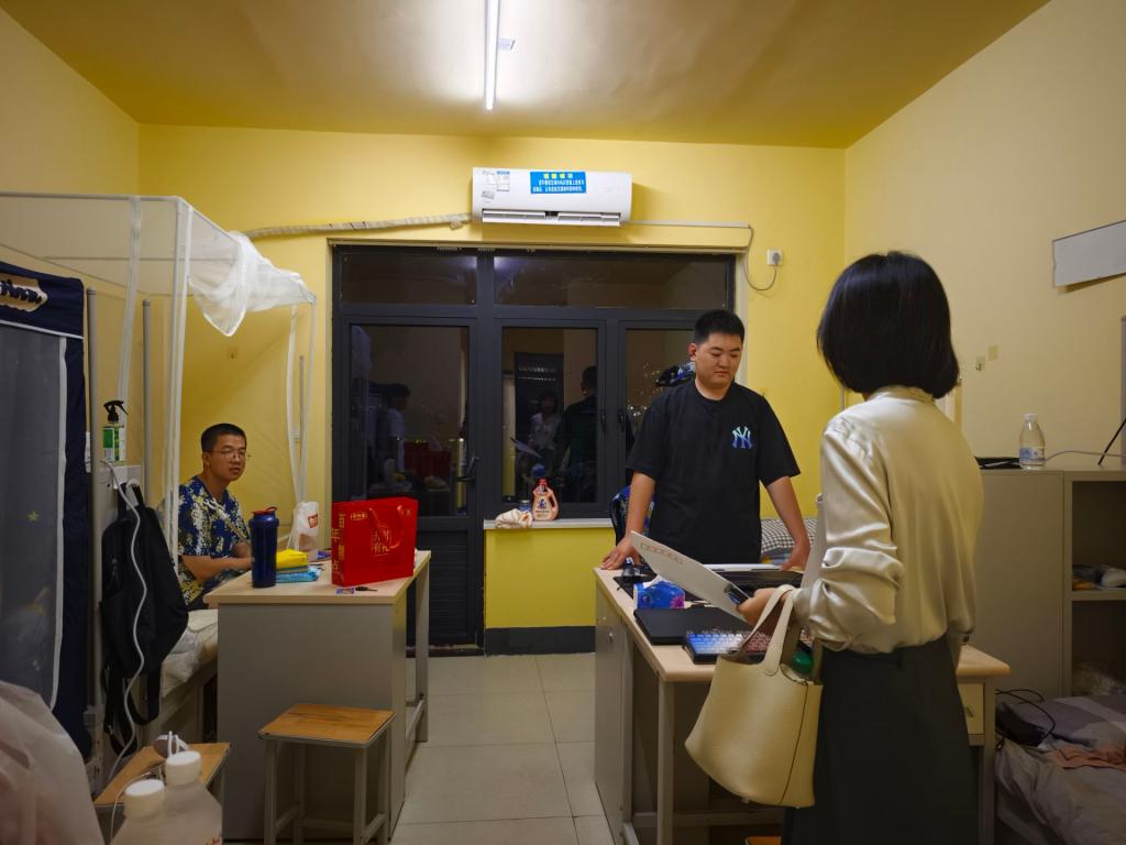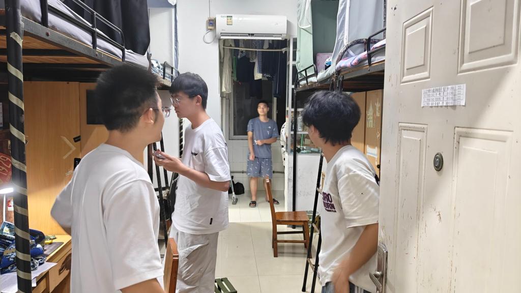 班会结束后,公司领导、班主任以及辅导员一行深入新生宿舍,走访慰问刚刚安顿下来的新同学。“家乡是哪里的?”“对公司的饮食和住宿还习惯吗?”“生活上有没有什么困难?”每到一个寝室,领导老师们都与新生进行亲切交谈,细致地了解他们的入住情况和生活需求,耐心解答同学们的各种问题,并叮嘱大家要尽快适应新环境,团结室友,注意人身和财产安全,以饱满的精神状态迎接接下来的军事训练和大学课程学习。亲切的问候和暖心的话语让新生们倍感温暖,纷纷感谢公司的关心。