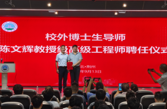 报告会后,举行了校外博士生导师聘任仪式,公司正式聘请陈文辉为44118太阳成城集团校外博士生导师,罗明璋经理为陈文辉经理颁发聘书,并合影留念。