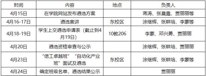 4、“信工卓越班”、“自动化产业班”各设一个班,班级人数均限定为30人。