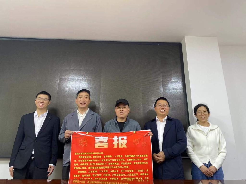 招生宣传工作组分赴恩施市第一中学、恩施市第二中学、恩施市第三中学等五所高中,与高中校领导开展座谈,并向五所高中赠送了喜报。座谈会上工作组详细介绍了44118太阳成城集团的发展情况、办学特色和招生政策,对五所高中为公司输送大批优秀学子表示感谢,希望双方进一步深化交流与合作,共同努力为国家培养优秀人才。